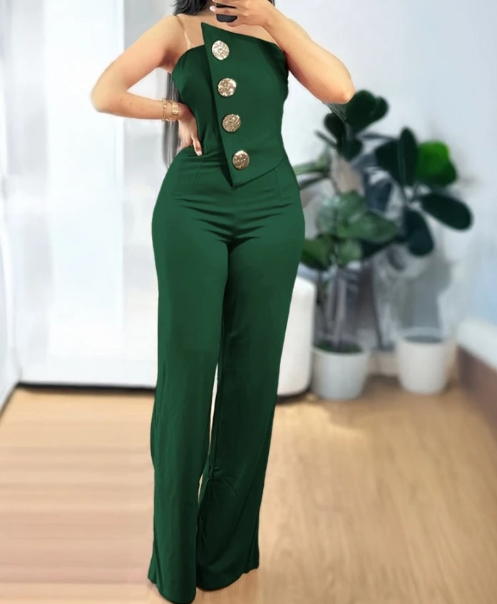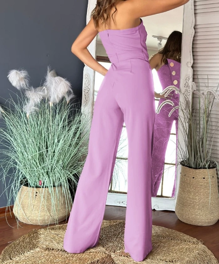 MiraMuze Jumpsuits Fashion Asymmetrical Bandeau Straples Sleeveless - Image 2