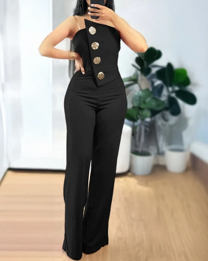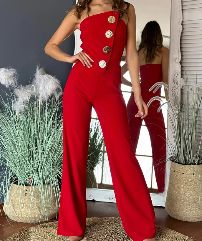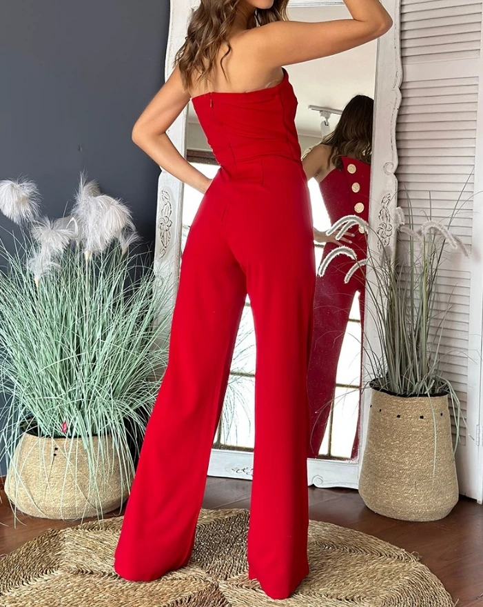 MiraMuze Jumpsuits Fashion Asymmetrical Bandeau Straples Sleeveless