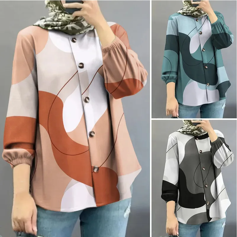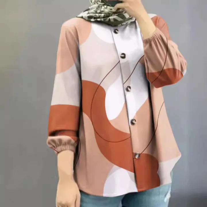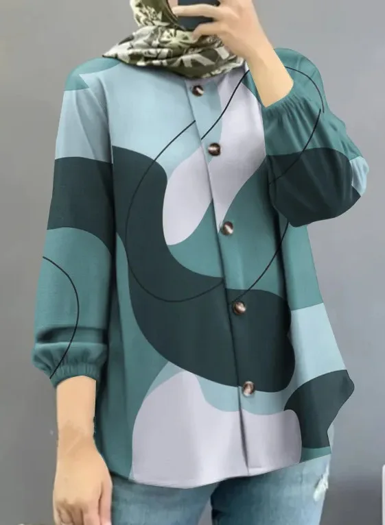 Home Shirts MiraMuze Printed Blouse Button Shirt Muslim Women