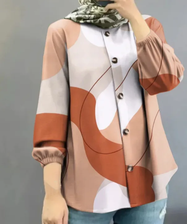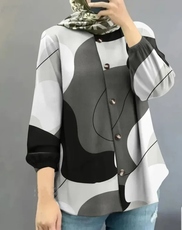 MiraMuze Printed Blouse Button Shirt Muslim Women