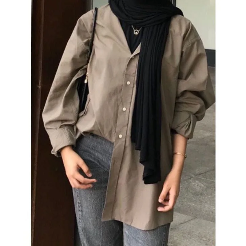 Home Shirts MiraMuze Women Muslim Blouse Vintage Turn Down Collar Long Sleeve Solid Single Breasted Loose Shirt Casual Islamic Clothing